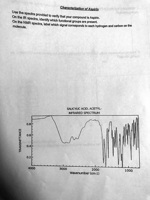When analyzing an ir spectrum, it is helpful to overlay the diagram below onto the spectrum with our mind to help recognize functional groups. After aspirin synthesis was complete, the aspirin was analyzed using both ir and nmr spectrometers in order to determine the.